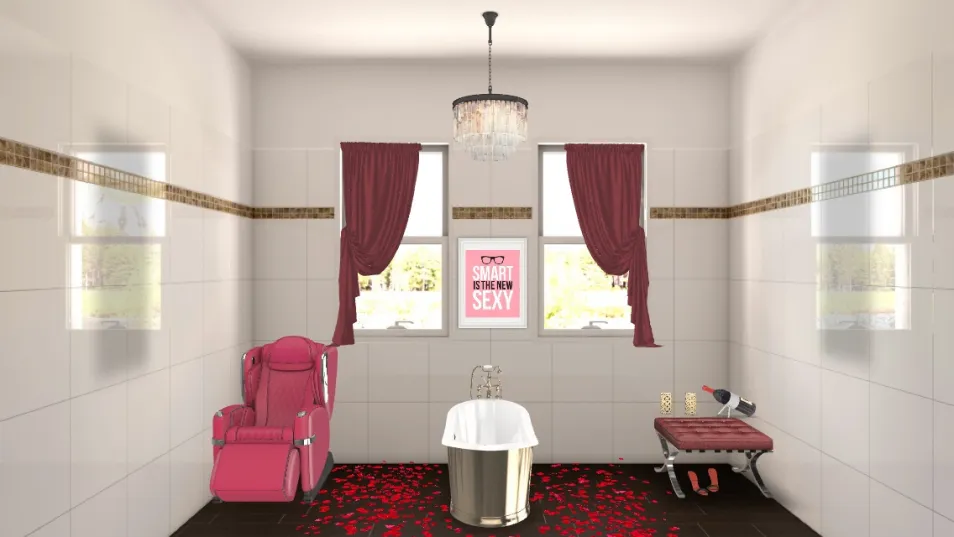 When I made this I was thinking of a relaxing day that a husband made for his wife. He set up the wine and rose petals. And when she’s done she can sit down and relax in her massage chair. (I tried to add shadows on the side of the walls. Comment if you can tell)