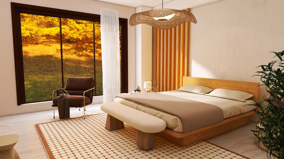 Sustainable interior design aims to blend natural beauty with functional innovation while focusing on environmental respect and resource conservation. In one of my projects, I ensured the maximum use of natural elements by incorporating mountain rocks as a core element of the interior décor, adding a sense of authenticity and strength. The doors were crafted from natural wood, left unprocessed at the edges to preserve their raw form, enhancing the connection to nature and reflecting a unique character. The color palette centered around warm beige tones, symbolizing tranquility and balance, complemented by a mirror designed in the shape of the moon, creating a visual link between the earth, sky, and mountains. To add cultural and emotional depth, I integrated memorial sculptures into the design, bringing a sense of identity and storytelling. For comfort and sustainability, the bed was made of natural wood, while the chair featured premium leather, striking a balance between elegance and durability. Finally, green plants were incorporated to bring life and positive energy into the space, reflecting the spirit of nature in every corner. This project embodies the concept of sustainable design by harmonizing natural elements with visual creativity, resulting in a serene and cohesive environment🤎🤍💚
