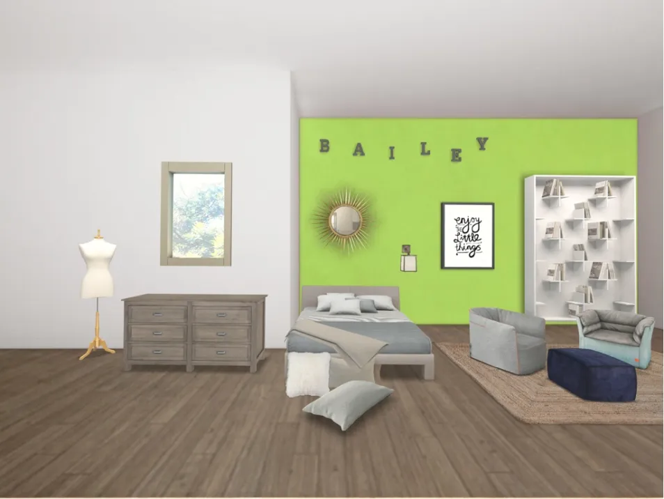 A modern design for that special little girl in your life. Plain but has lots of character and with a gorgeous green accent wall it’s everything you want for your baby.
