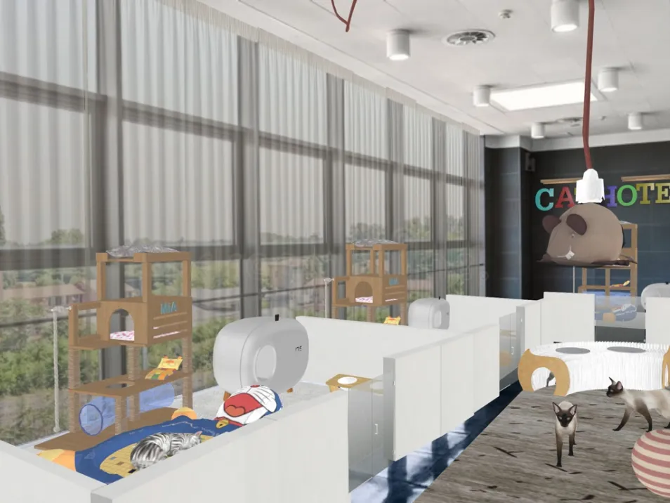This Business is sure to get a five star review this is a place for cats to stay active during their stay at this hotel a play area and comfortable bedding for them I’m quite sure these cats would enjoy their time here hopefully the Homestyler team and you all like it