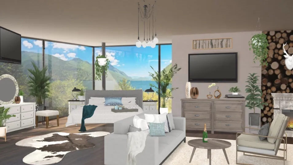 My entry for the hotel competition! A home away from home full of comfort, style and sophistication. A luxury mountain top view that is just as perfect on the inside too! Earthy wood tones & crisp greys & neutrals make it feel like a luxury space but like a warm marshmallow . Enjoy my entry & please show support ☁️🍃