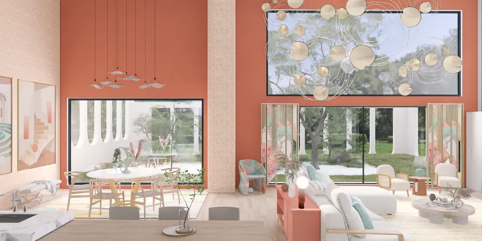 Great room inspired by coral, rust and aqua 🐠🦀🤍