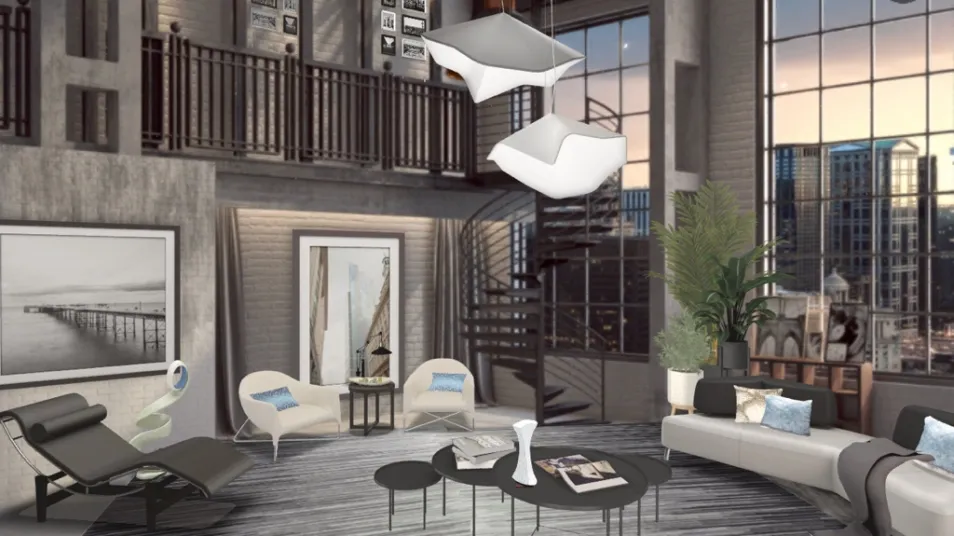 Penthouse living room for a successful architect... mostly minimalist and monochromatic 🖤🤍... with hints of blue 💎