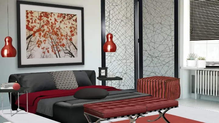 Dormitório composto por mobiliário e elementos inspirados nas cores do baralho. Excentricidade e ousadia tomam conta do ambiente.