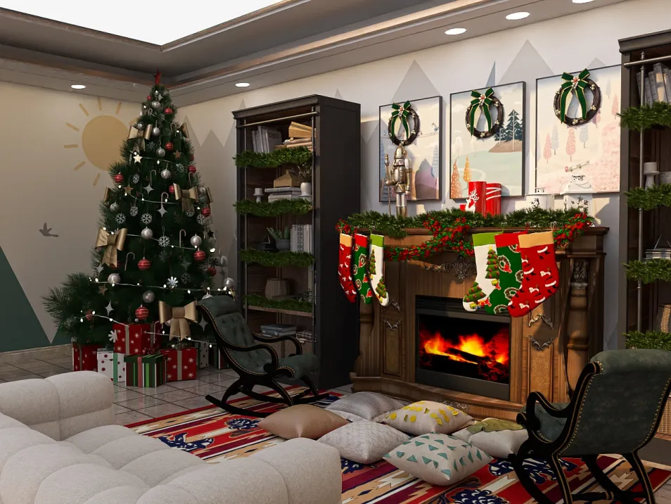 As the holiday spirit fills the air, the cozy room radiates warmth. The vibrant Christmas tree stands tall, adorned with twinkling lights, while stockings hung by the fireplace promise joyful surprises. Plush cushions invite laughter, creating a perfect sanctuary for cherished memories.