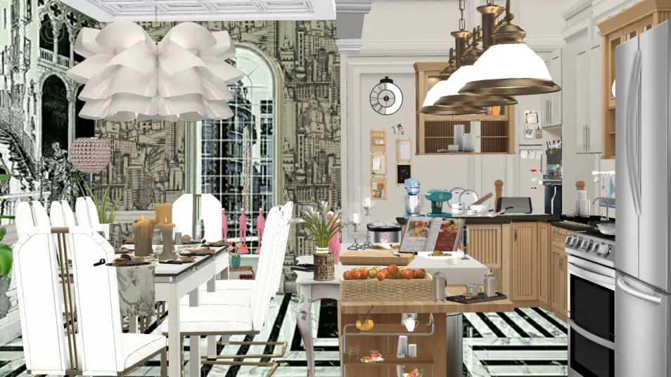 Thank you so much for this challenge. I hope I an still on time and I hope you enjoy my new work. This is my new version of the combo room. A kitchen and a lvingroom in Paris. Greetings and congratulations to everyone.