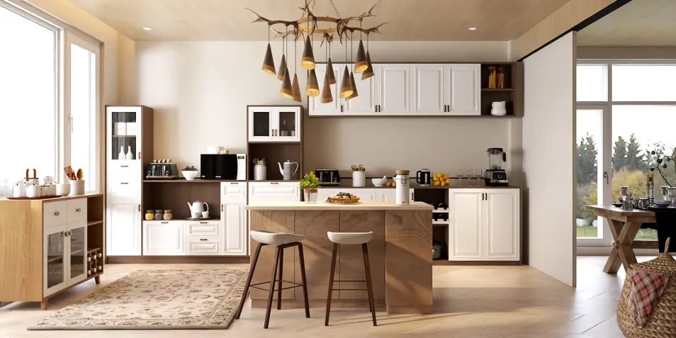 hello I chose for this design materials from nature with neutral colors to give a cocoon aspect to this kitchen
