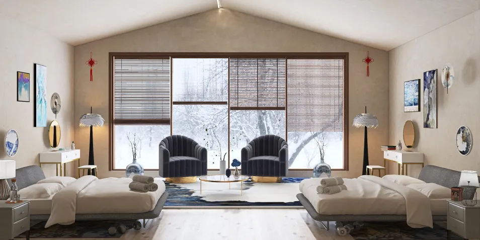 Una habitación cómoda, con un lugar para tener una larga conversación, me gustó mucho la temática de invierno dentro del cuarto.