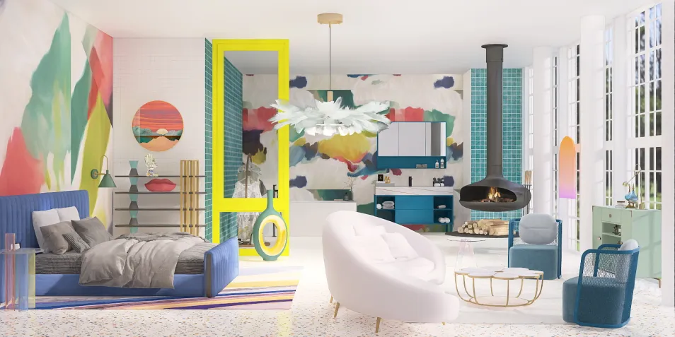 Groovy graffiti studio apartment. Embrace the color! 🦩🧑🏼🎤🌈🕺💃🏻🧑🏼🎤💋🕶🦄❤️🧡💛💚💙💜