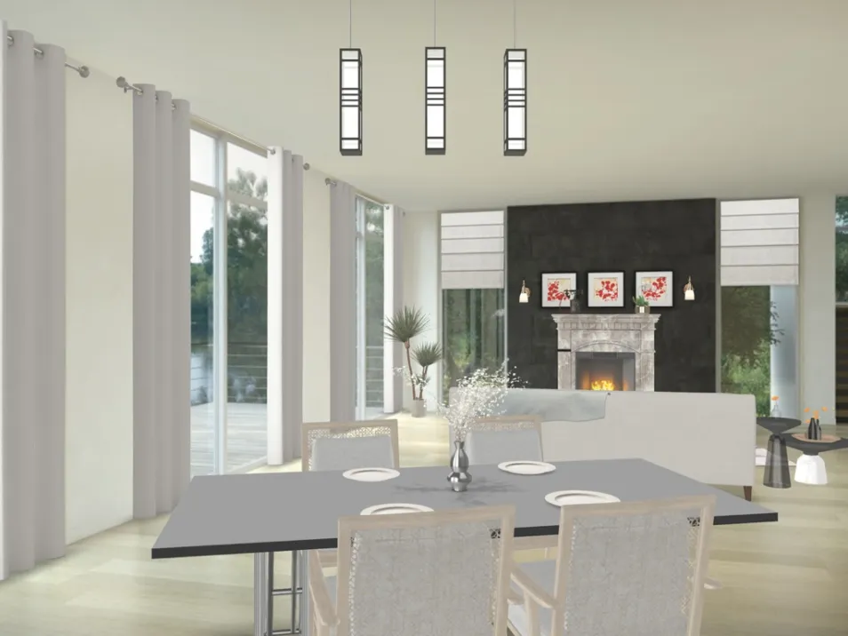 This room has some light Elements and some dark. It is very open and has tons of natural light.
