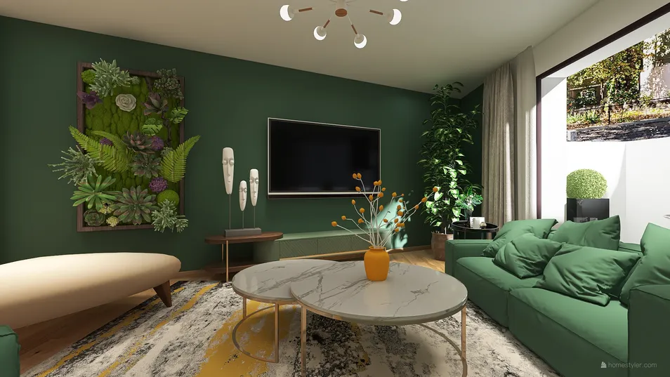 This small project aims to design a functional and up-to-date design for the living areas in a 2 bedroom apartment in Bucharest, Romania. With a semi open kitchen, the dining area ties together the living room with the kitchen. The apartment is designed for a young couple that loves to entertain and throws house parties as often as possible. that means the design needs to incorporate as many seating areas as possible, dining for 6-8 people, a bar area with a max seating of 4, and a living room with 8 seatings available. Two couches and a large ottoman should do the trick.