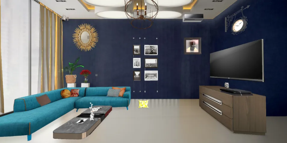 The design includes a simple living room with a blend of coziness.. With a L-shaped sofa and beautiful coffee table. This is perfect for people looking for simple looking living room. .