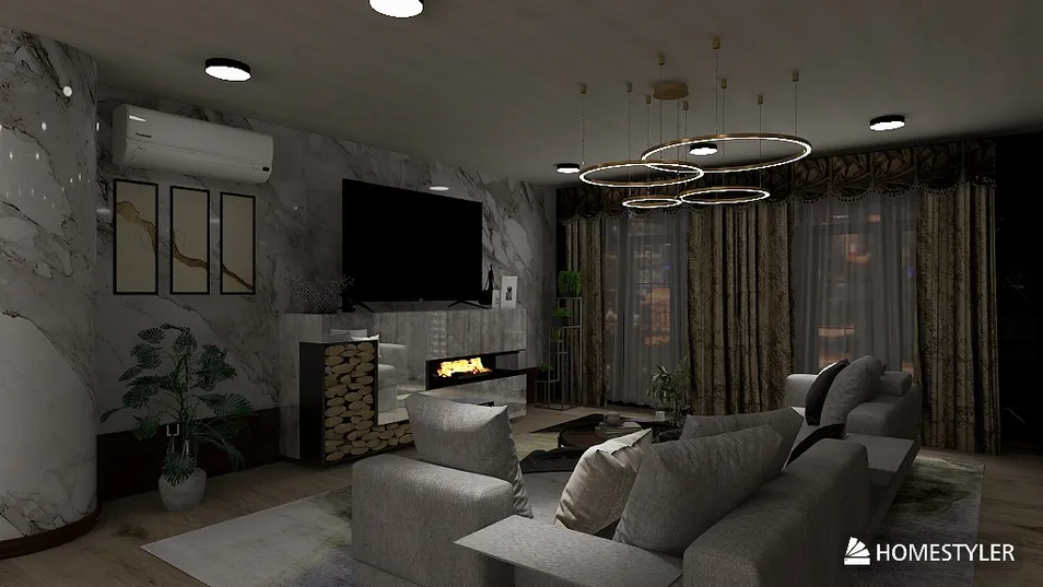 Just tried my hand at designing with Homestyler for the first time! I experimented with some unique elements and combinations. What do you think of the marble textures and cozy vibes?