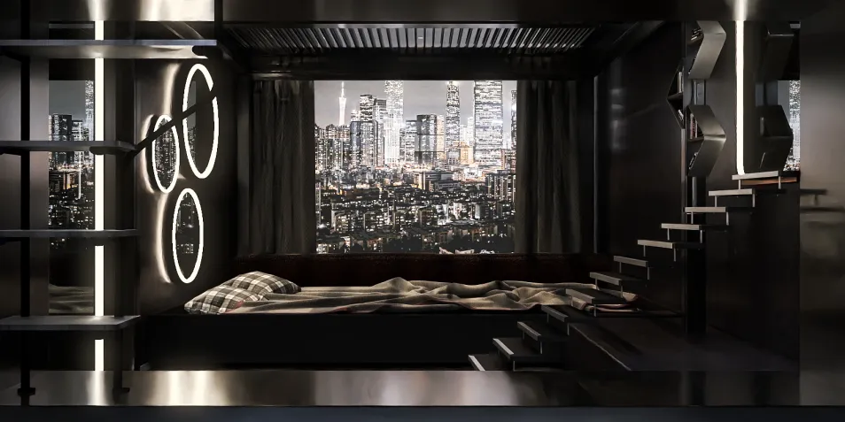 Sleeping pod for multiple people. Dark, cozy, and luxurious.
