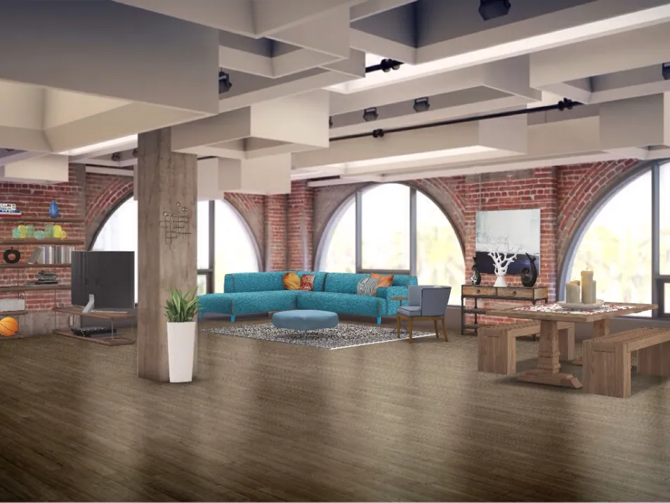 This design fits the living room and dining room in one shot. As for inspiration I just thought of what I would like in a house and what would suit the space