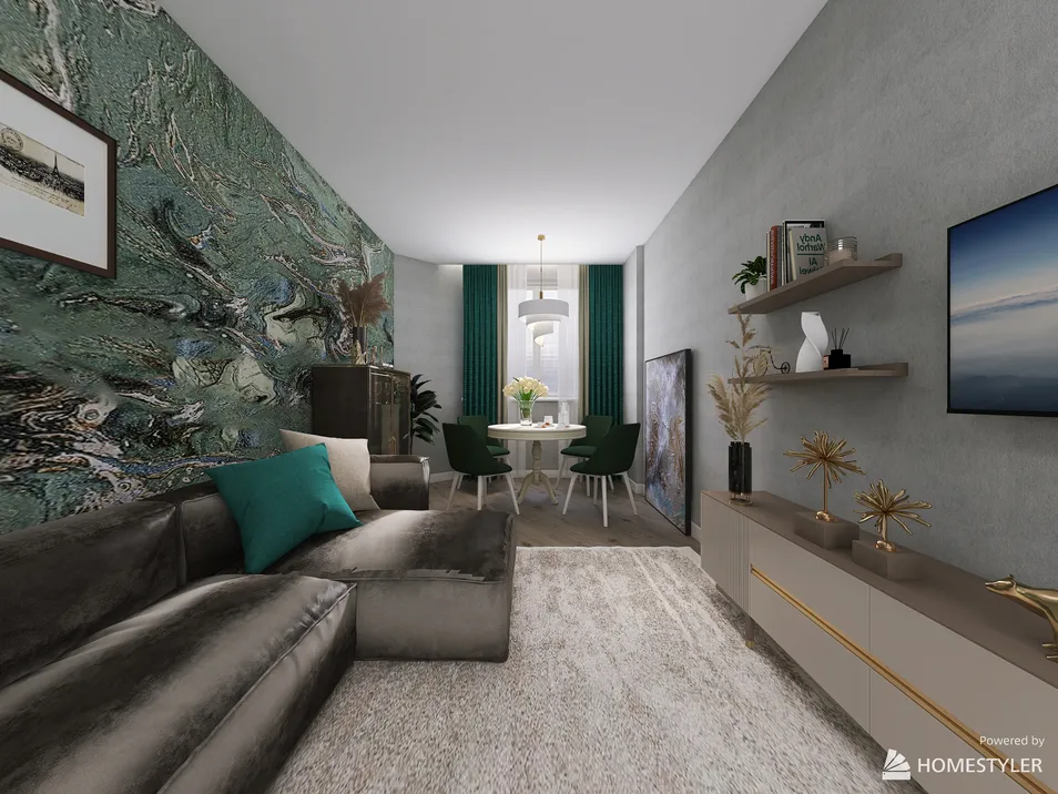 The room had already been renovated - wallpaper was hung, there was a sofa, a dining group, curtains hung. I needed to put an end to the decoration of this interior. I picked up a cabinet under the TV, put a sideboard, covered the carpet.