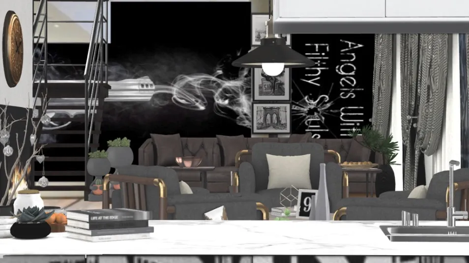 Melissa and Lewis are film noir fanatics! That is what bonded them in the first place and their loft in Brooklyn could not be any different. They love christmas as much as anyone else and instead of wishing each other Merry Christmas they say the epic line from the fake film noir ‘Angels with Filthy Souls’.