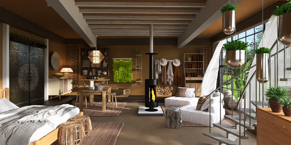 A place where everything you grow inside you can eat. Stairs to a rooftop garden and where your solar panels live. And all your living space is open and airy.