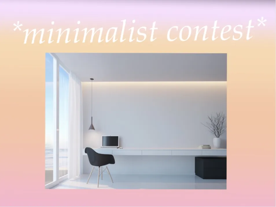 hi! so this is my new contest, it’s called #minimalistcontestpaige (all lowercase) and you need to make a minimalist room with an artwork piece that is colorful. please have this done by the 12th! thanks so much!