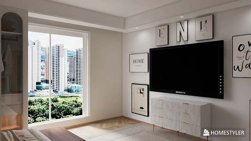 In this modern two-person dorm, sleek lines meet cozy comfort. The light-filled space features a chic living area with a large TV, a stylish dining nook for late-night chats, and a compact kitchen that balances form and function. Each corner invites relaxation and connection.