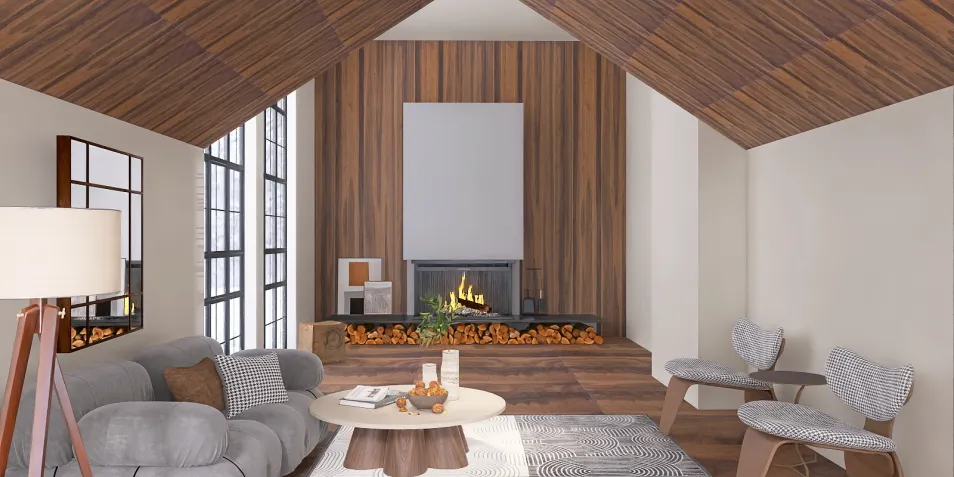 Encompassing darker wood with rounded curvy furniture. Using only essentials with earthy tones!