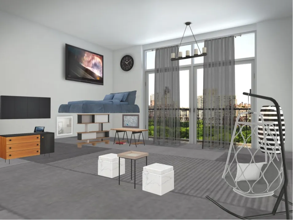 For my dream bedroom to be my dream bedroom, it has to have some where to sit, TV , a porch and a swing chair. oh and you can’t forget about the loft bed!