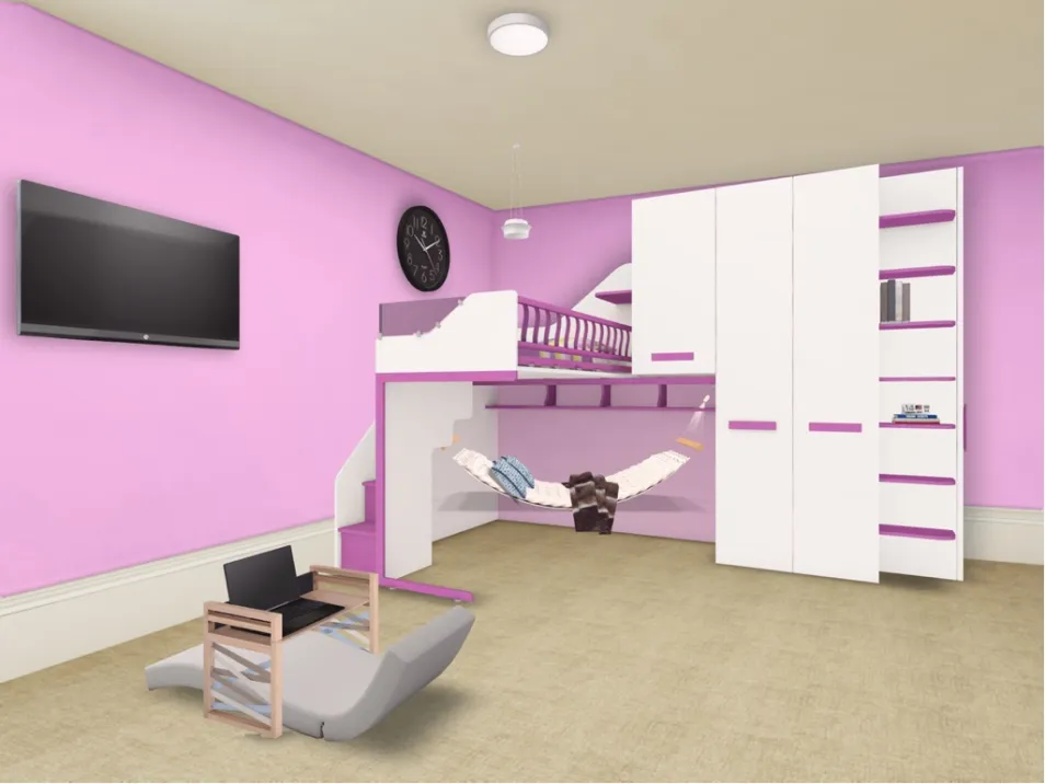 This is the room I wished I had with a high bed, a hammock, television and ginormous wardrobe