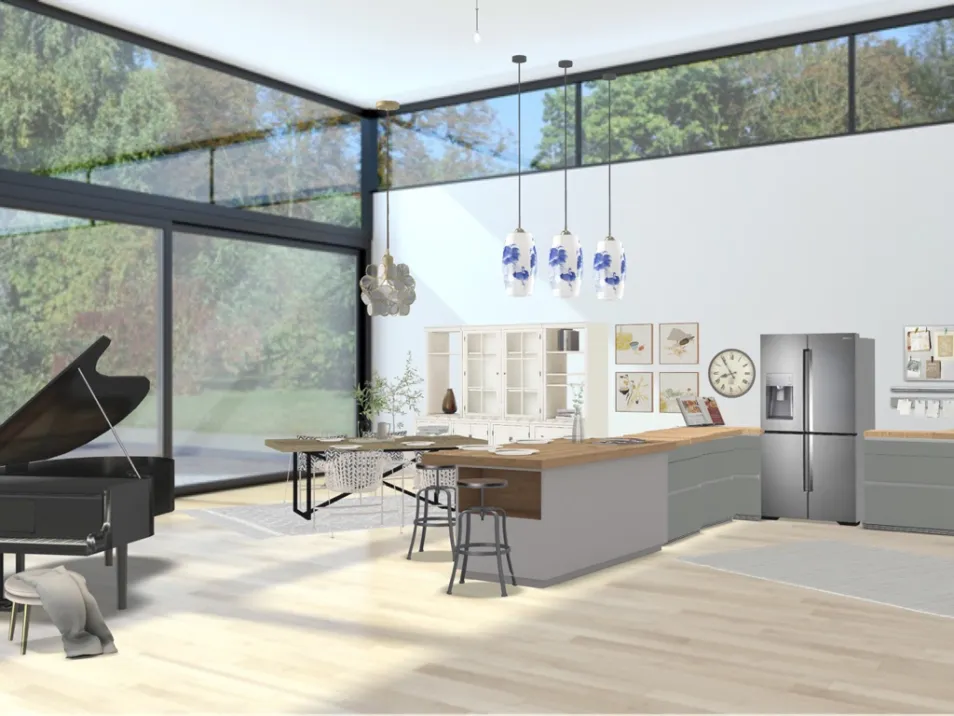 In this big bright kitchen you can sit down and eat,prep dinner or even play the piano.