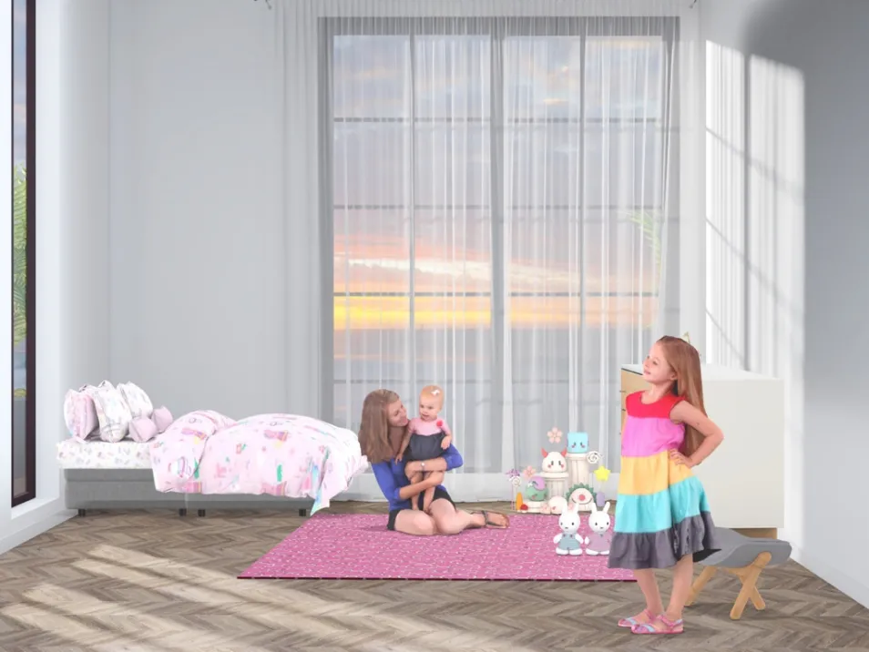 Voilà la nouvelle chambre de Lina qui a 8 ans sa maman est présente et sa petite sœur aussi .🤱🏼