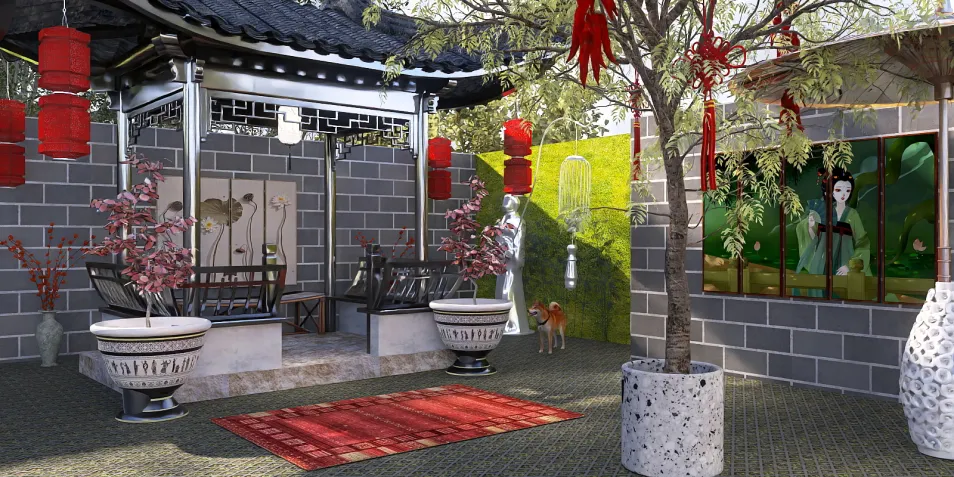 Eastern inspired outdoor living area