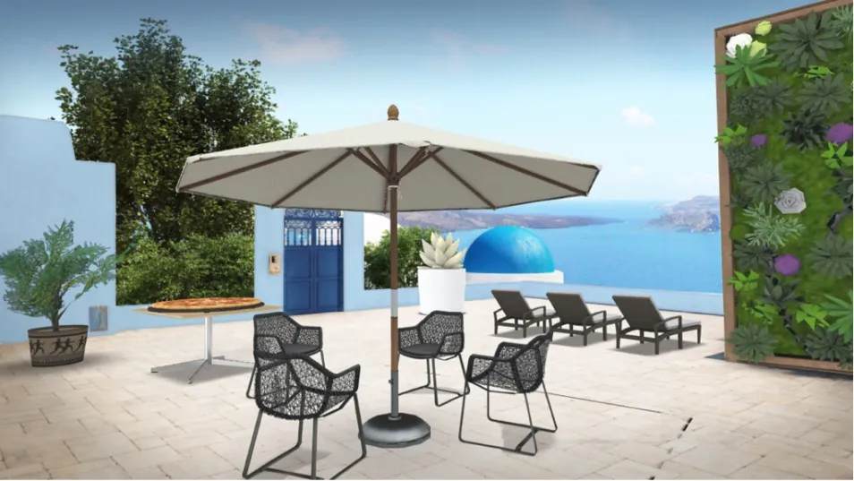 This is a lovely place ,when the weather is nice, to relax. Lots of chairs so you can invite friends and family over. A MASSIVE pizza to share! And lots of nature!