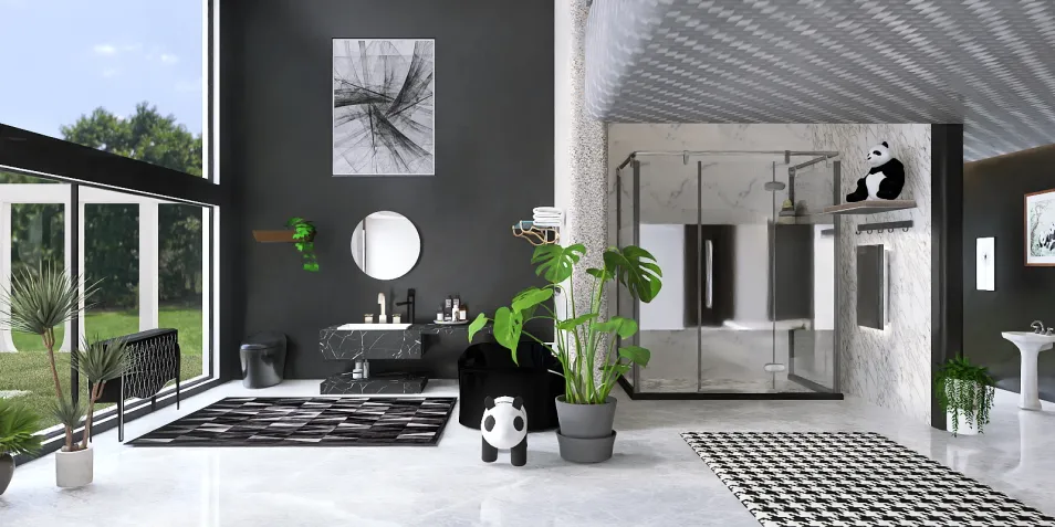 I love the shower and bathtub in separate areas of this giant bathroom. Also I love the sunlight, as long as it's not facing any neighbors!