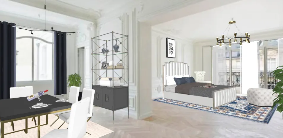 This room is a light and airy with manily dark blue, black and gold decorations and accents. This room would be a luxury suite or apartment to stay in or live in. It is so beautiful and if you agree please like my designs and follow.I am did this Paris room for a Design Challenge and would love it so so much if I could win the challenge because design is my passion. Thank you all for you support and incperation. ❤🧡💛💚💙💜.