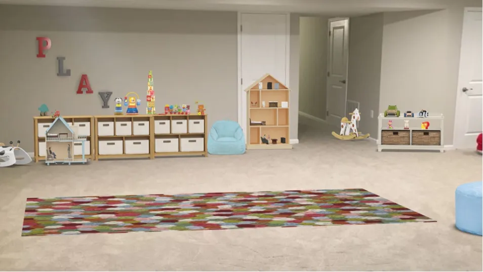 A basement playroom where the kids can play and the adults can visit in the other room and not be far! Also notice the details in the doll house!!