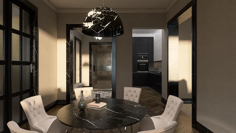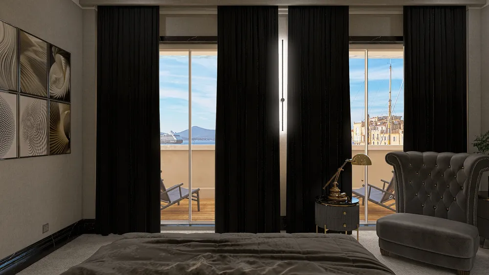 This is a proposed 2 Bedroom Stateroom for a Cruise Ship 3 bathroom, 2 balconies and a kitchen