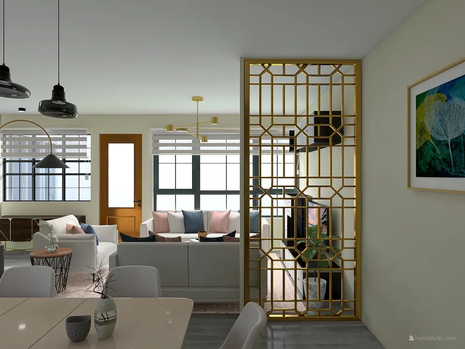 Proyecto de diseño para sala, comedor y recibidor, de estilo contemporáneo con detalles de estilo mediterráneo e industriales