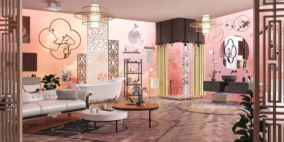 Clean beautiful bathroom, pink vibes, open space, perfect for Mirror selfies