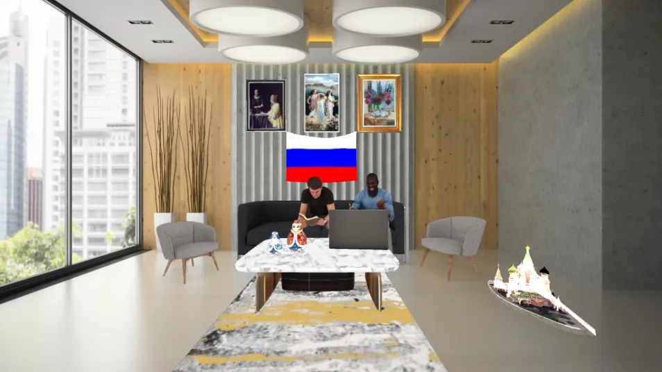 i like the russian style, its very cool, as you can see in this modle there is paintings and a modle of a russian palace. there is also a russian flag and figures!