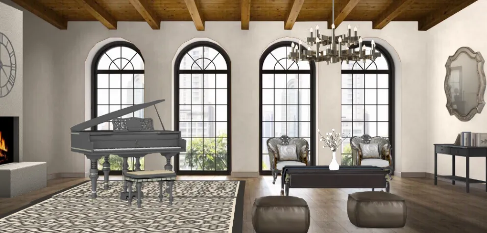 This is a gorgeous black and gold russian music room. I love how the colors blend and contrast beautifully with each other. The dark table with the light colored chairs contrast so great and I am truly proud of this design. So if you could do me one favor and like my design that would be great.