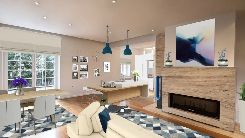 Moderno salon-comedor integrado con la cocina en un conjunto diseñado en líneas modernas. Espero que os guste 😘😘