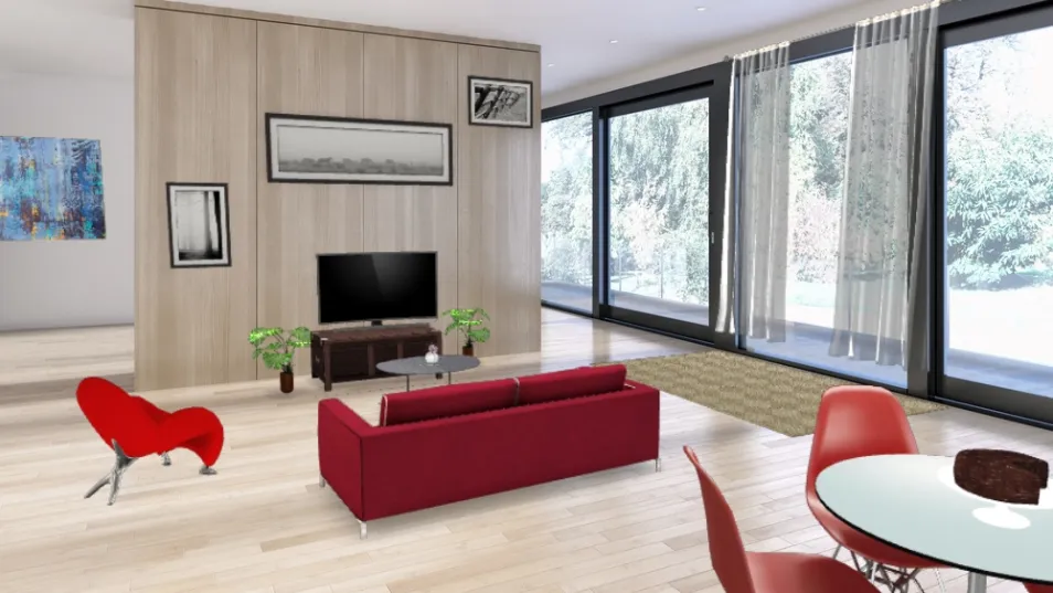 C'est un salon sur un thème plutôt rouge, qui veut habiter dans cette maison? 😂😜