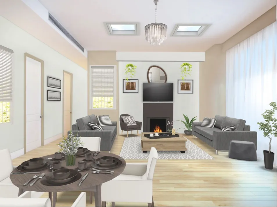 A living room in a show room house.