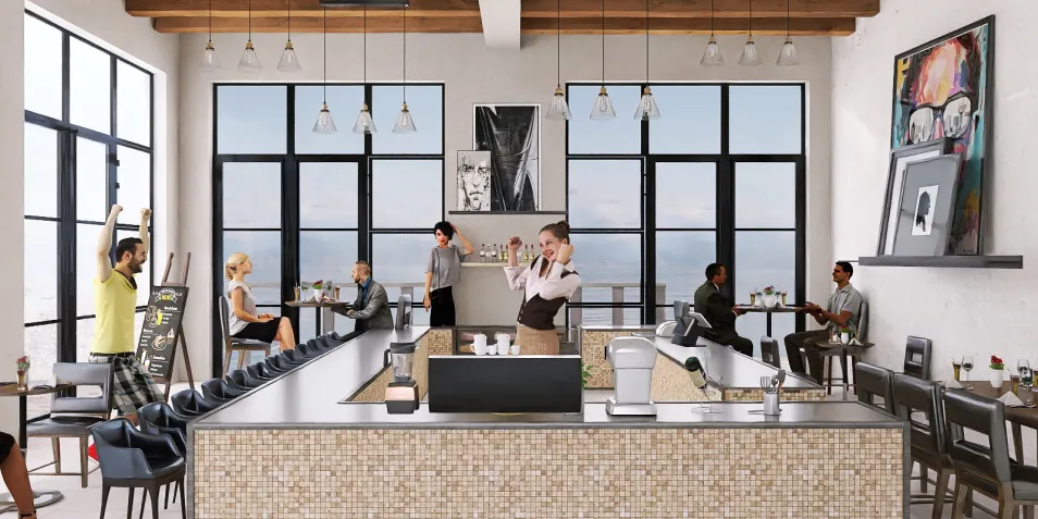 Fiancé gave me bar and grill as an idea💡and my mind put this together ! Simple, modern place to meet friends for a drink and some food .