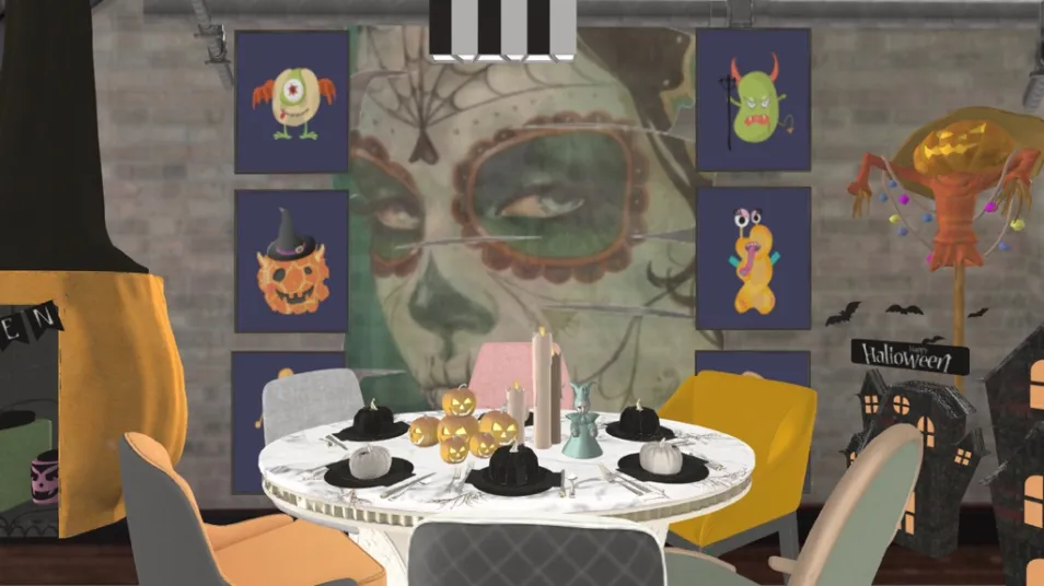 Cozy corner in a family friendly Halloween restaurant! Thanks to Kristi Herzog for the template!