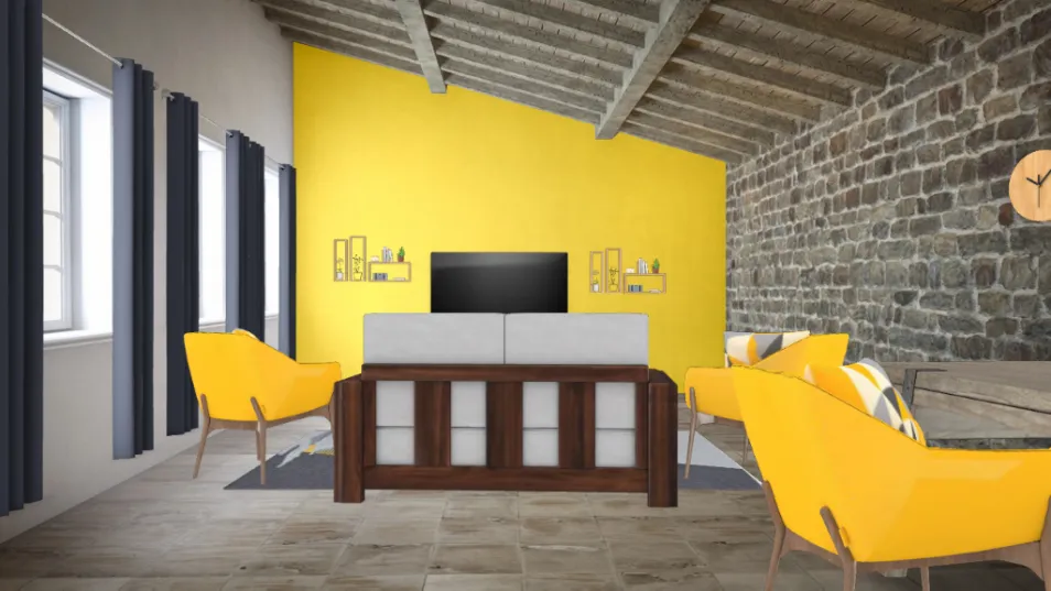 a modern twist on a traditional rustic living room. Bright colours accent happiness and love.