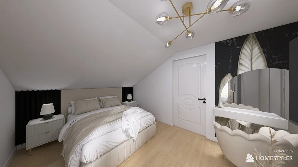 Klientka chciała szafę na całej ścianie i wiszący telewizor, przeważać miała biel, ale nie mogło być też za biało, miało się coś dziać. Lubi lamele i dekoracje boho, w projekt chciała wnieść odrobinkę loftu stąd lampa loft i czarny lamel. Konieczne były rolety bądź żaluzje, bez firan i zasłon. Meble w kolorze drewna. Myślę że udało nam się to połączyć. Co myślicie? Klientka jest zachwycona :)