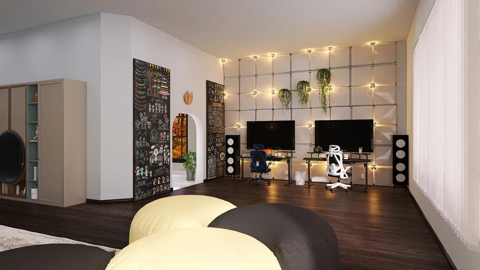 The Teenage Paradise is a room that caters to teenage boys and has all the things a boy could want. Anything from gaming consoles to shoe collections to bookshelves to a set of two bunk beds. You could spend all day here thanks to the convenient attached bathroom; there's no need to leave.