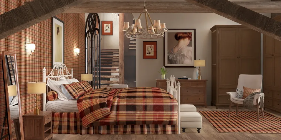 I wanted to try and create a warm and cozy bedroom in this small room that reminds me of my granny’s house. It was very old and had 3 floors plus the attic where granny kept the apples from the garden to ripen and I can still remember the smell today. It’s Jennys room.