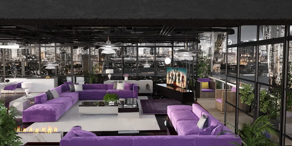 I love purple and penthouse apartments, especially dark and moody and large glass windows to sit with a coffee or glass of wine and take in the fantastic night view 💜💜💜