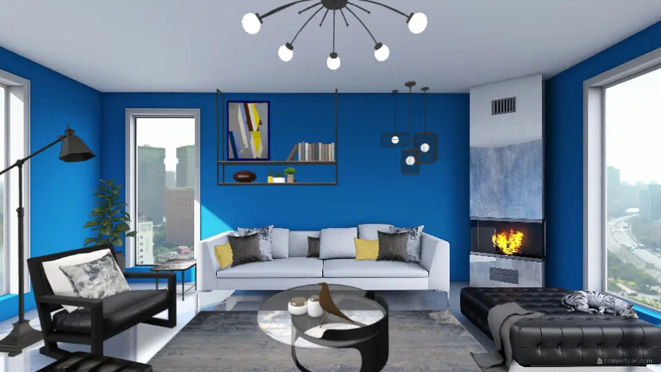 Inspired by the blue, white, silver and black Detroit Lions. The industrial touches allude to the NFL team owners, the Ford family; while the yellow accents are a tribute to the University of Michigan.